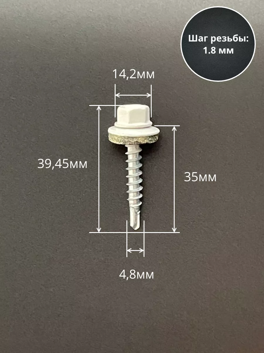 Саморез кровельный, 4,8х35 сигнально-белый RAL9003 50 шт