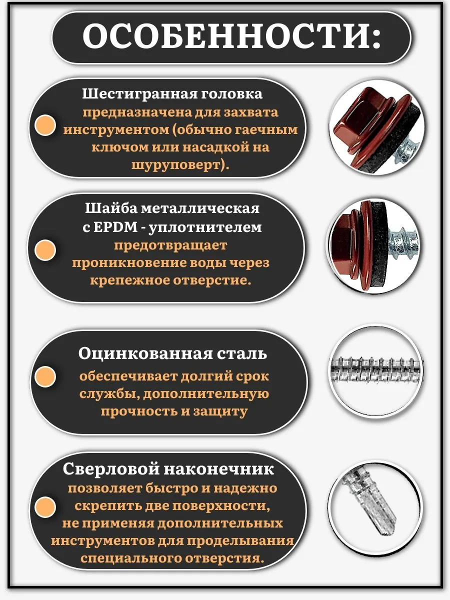 Саморез кровельный, 4,8х35 винно-красный RAL3005 250 шт