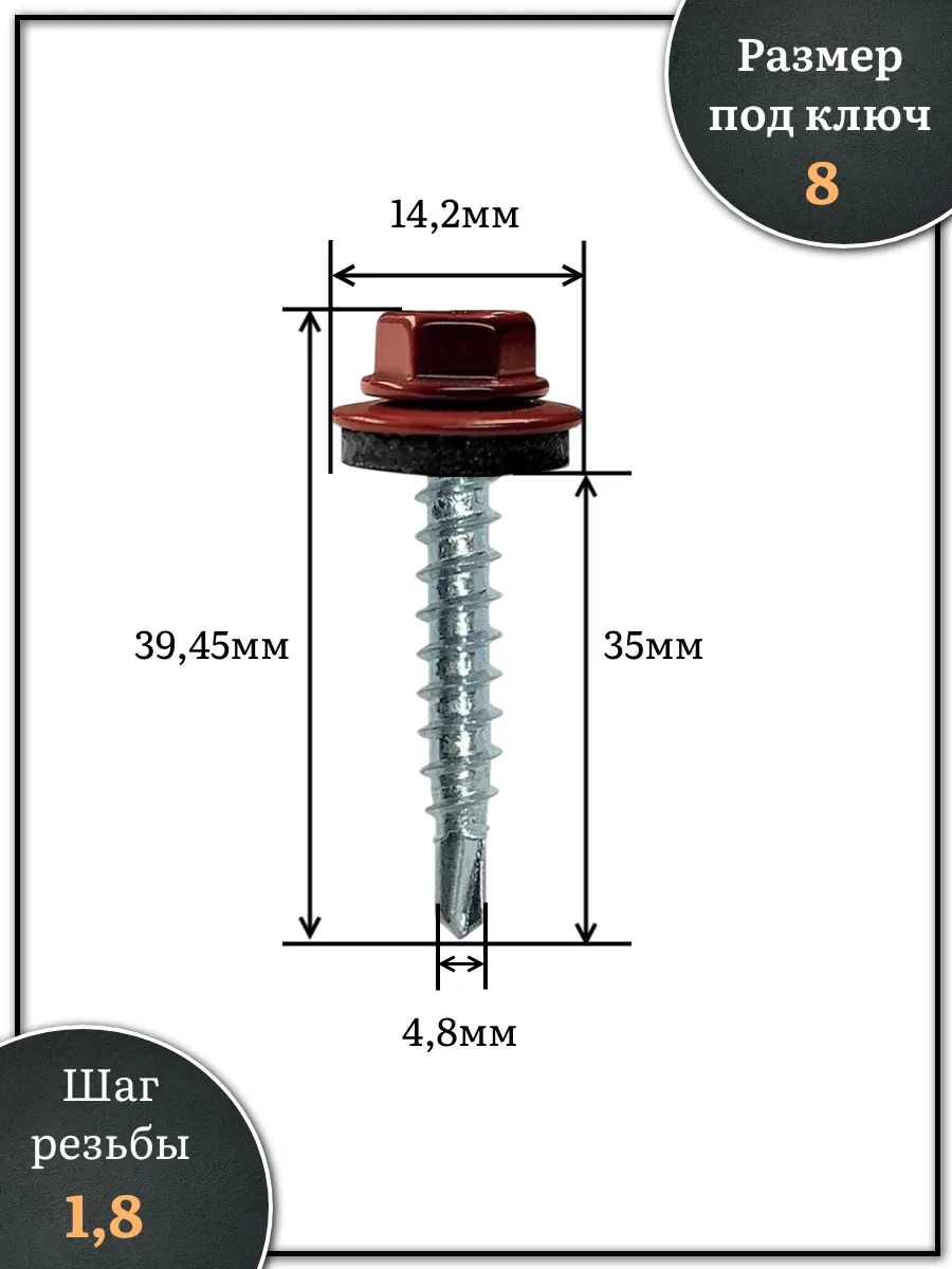 Саморез кровельный, 4,8х35 винно-красный RAL3005 500 шт