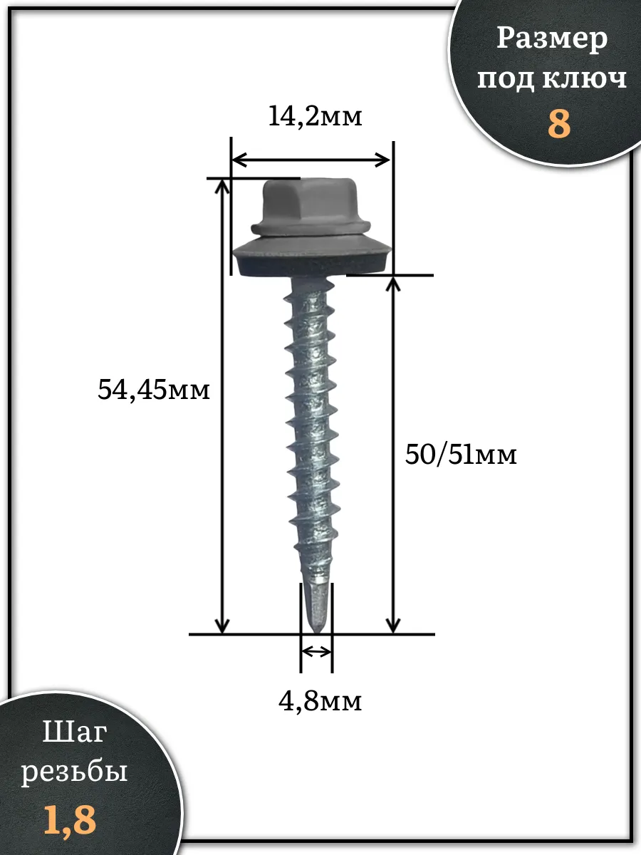 Саморез кровельный, 4,8х50/51 графитовый серый RAL7024 1000 шт