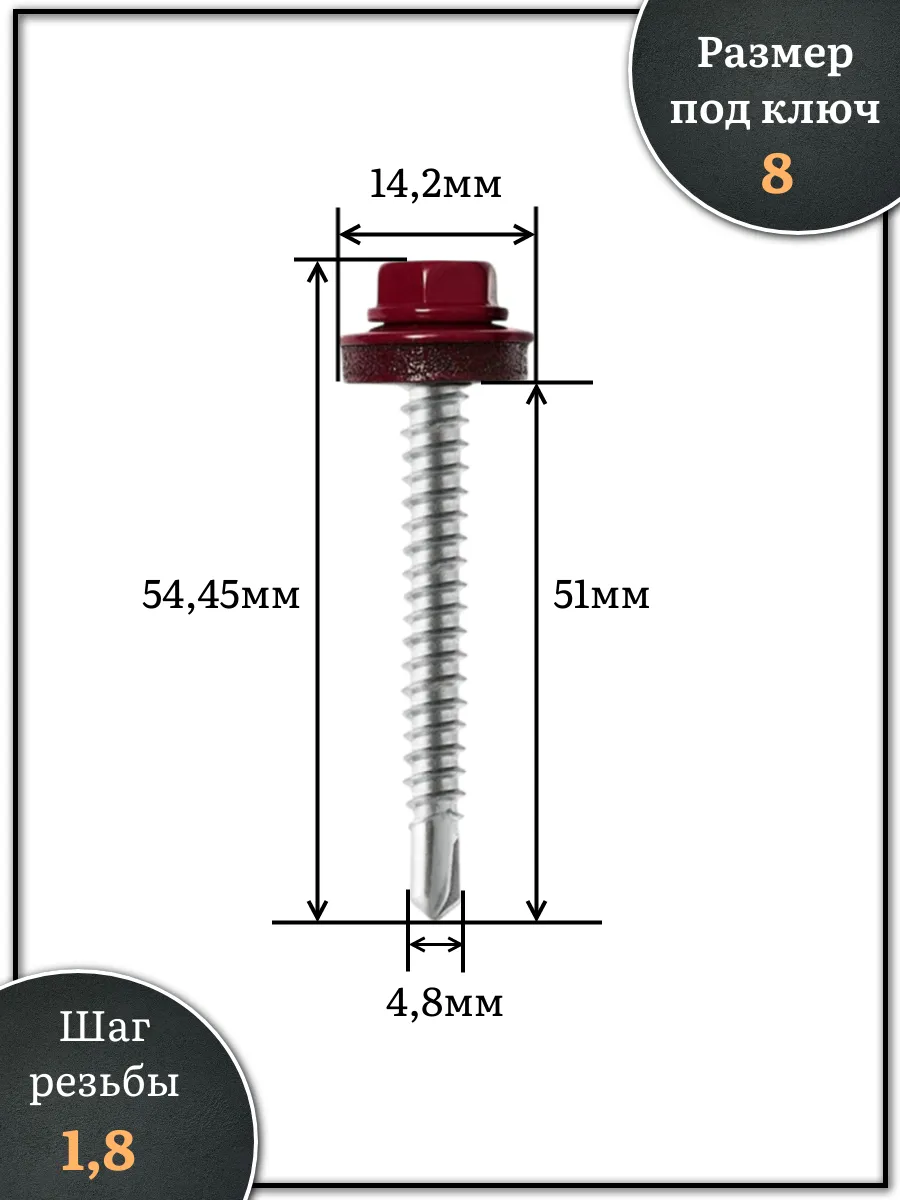 Саморез кровельный, 4,8х50/51 винно-красный RAL3005 250 шт