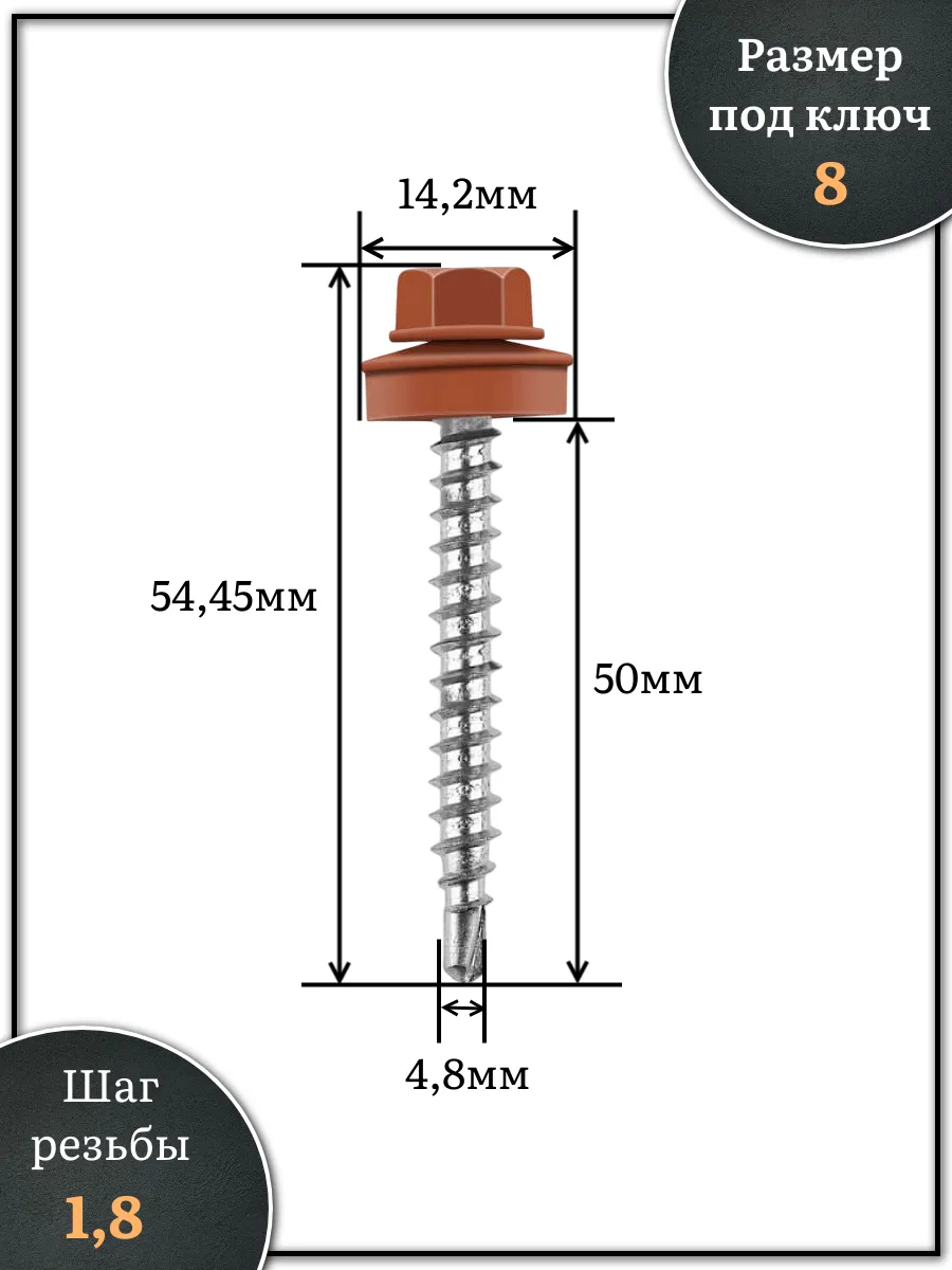 Саморез кровельный, 4,8х50 медно-коричн. RAL8004 250 шт