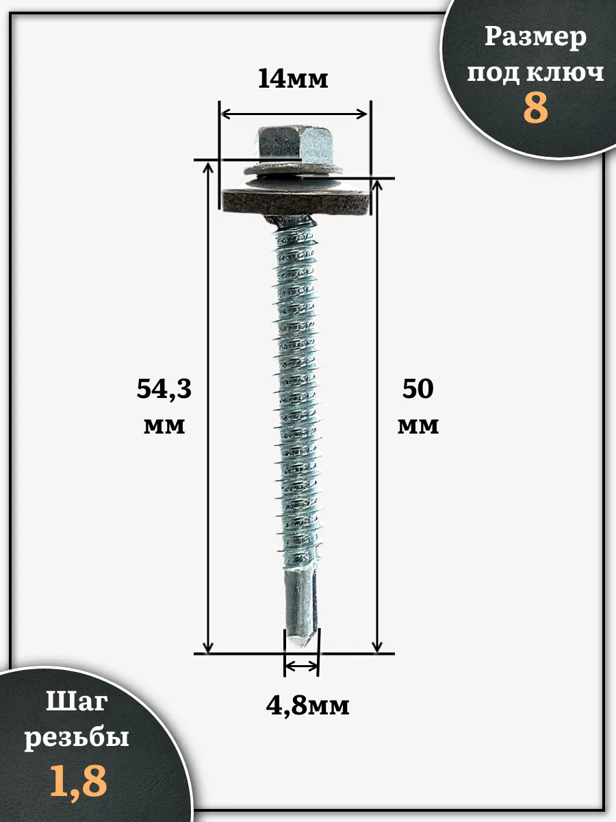 Саморез кровельный 4,8х50 мм с шайбой (под сверло),ОЦ 500шт.