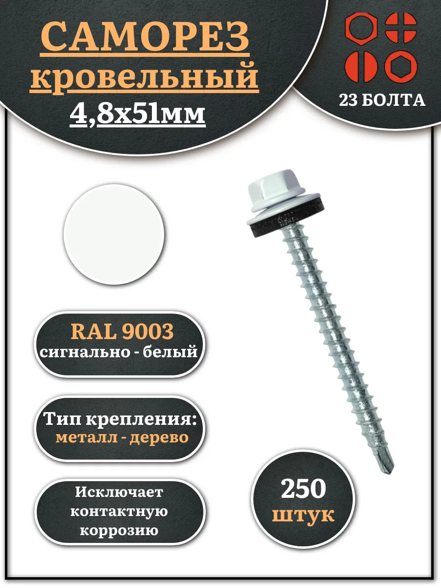 Саморез кровельный, 4,8х51 сигнально-белый RAL9003 250 шт