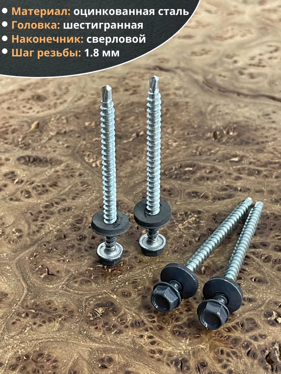 Саморез кровельный, 4,8х70 графитовый серый RAL7024 50 шт