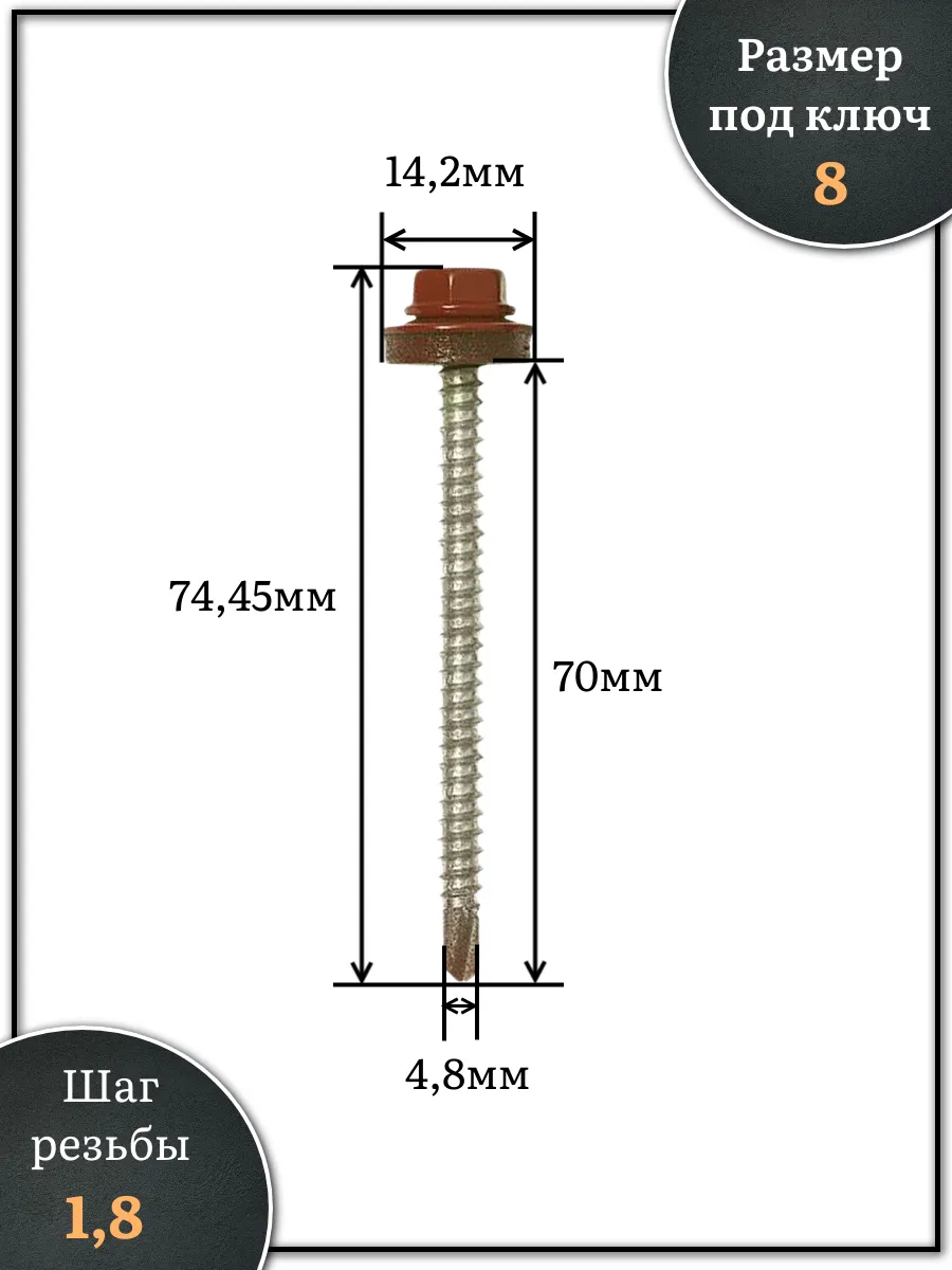 Саморез кровельный, 4,8х70 медно-коричн. RAL8004 1000шт