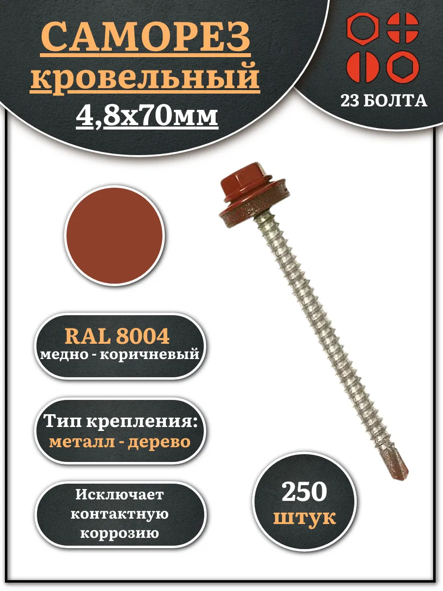 Саморез кровельный, 4,8х70 медно-коричн. RAL8004 250шт