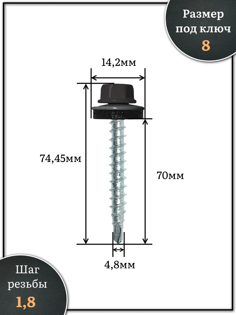 Саморез кровельный, 4,8х70 серо-коричневый RAL8019 1000 шт