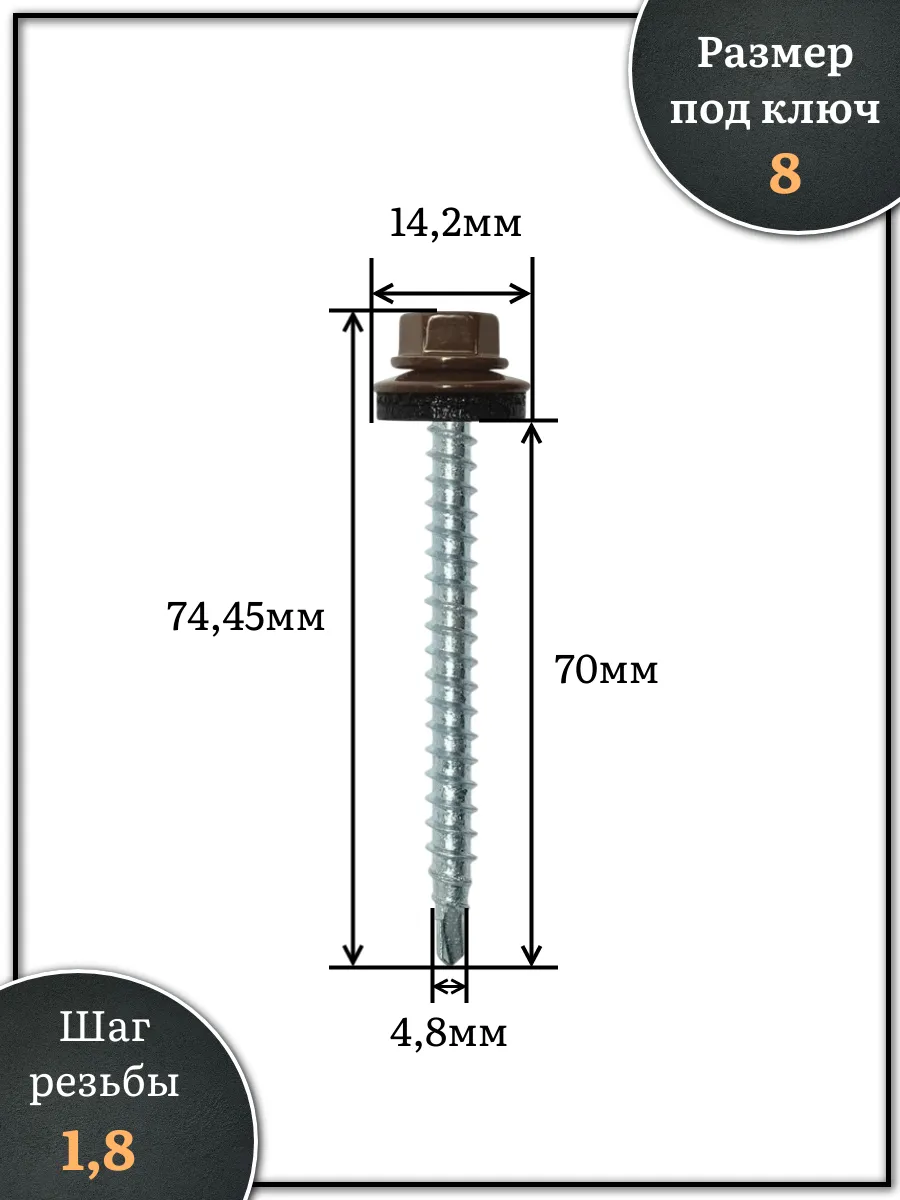 Саморез кровельный, 4,8х70 шоколадно-коричневый RAL8017 1000шт