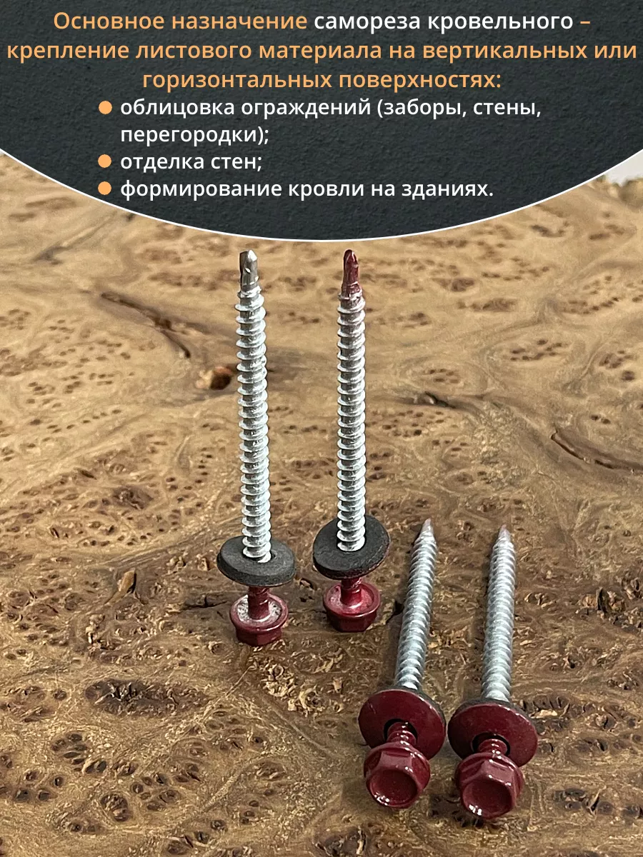 Саморез кровельный, 4,8х70 винно-красный RAL3005 50 шт
