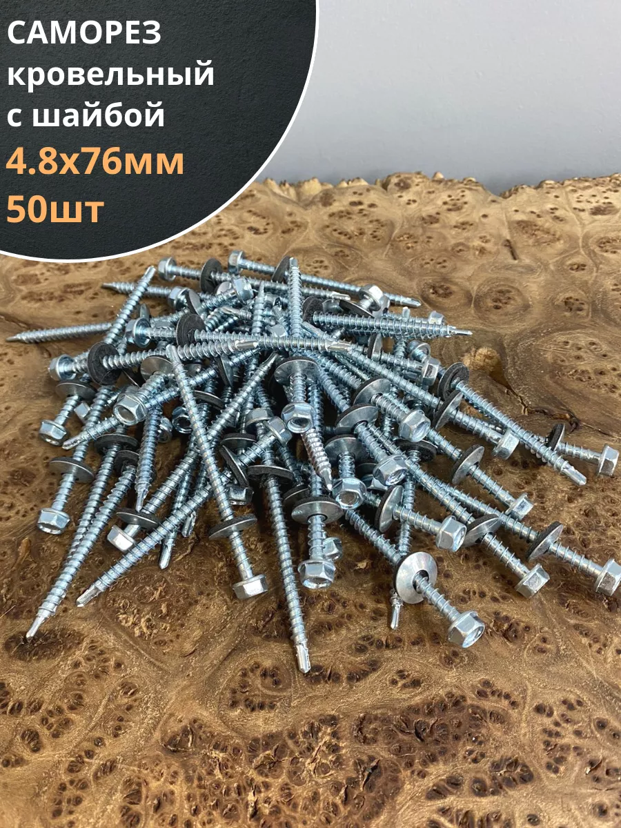 Саморез кровельный 4,8х76 мм с шайбой (под сверло),ОЦ 50шт.