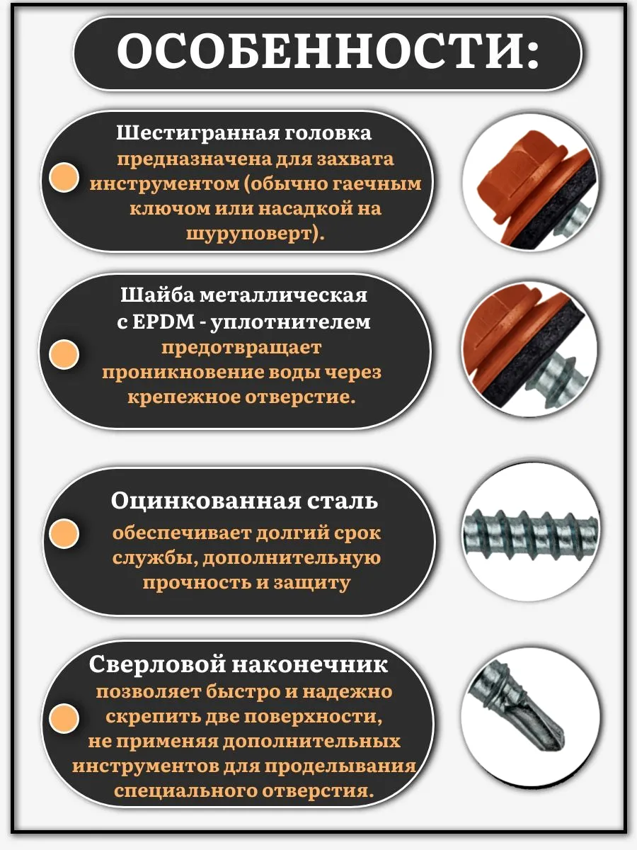 Саморез кровельный, 5,5х19 медно-коричн. RAL8004 500 шт