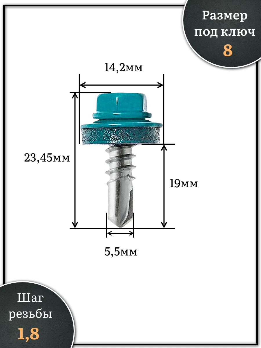 Саморез кровельный, 5,5х19 морская волна RAL5021 250 шт