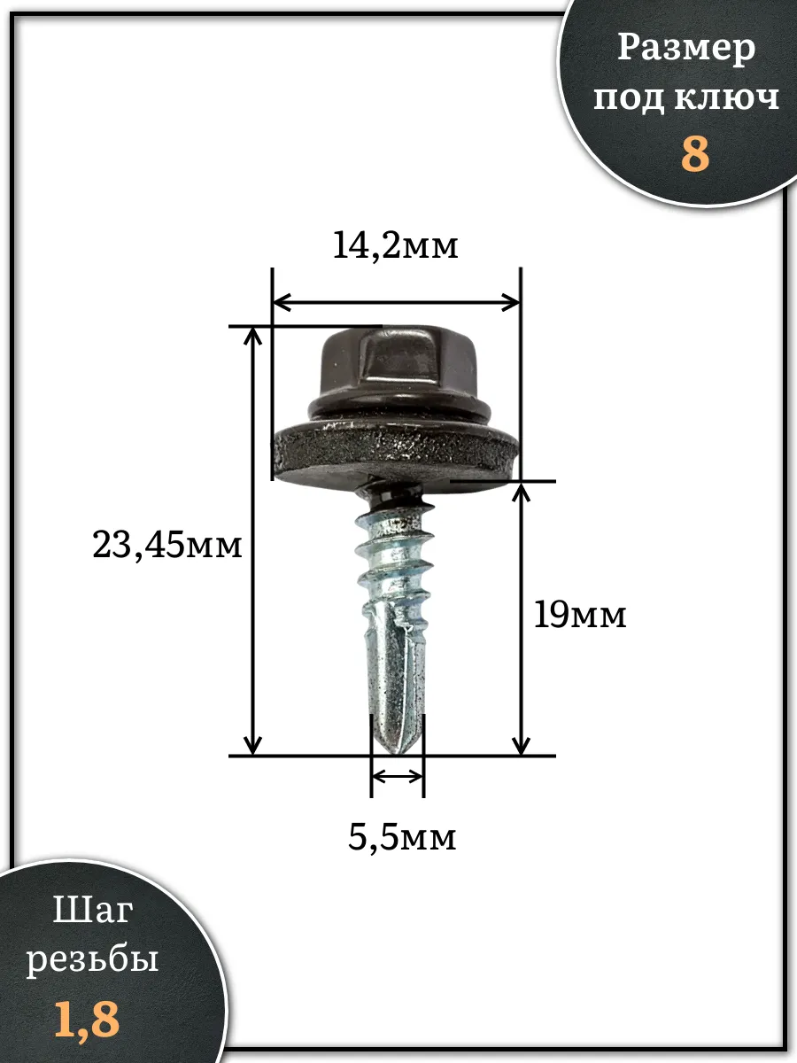 Саморез кровельный, 5,5х19 серо-коричневый RAL8019 1000 шт