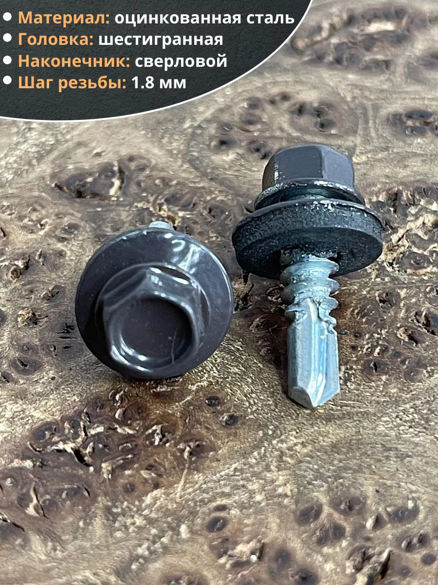 Саморез кровельный, 5,5х19 серо-коричневый RAL8019 50 шт