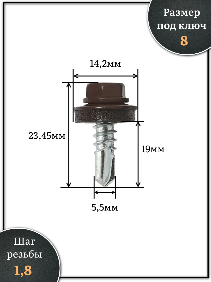 Саморез кровельный, 5,5х19 шоколадно-коричневый RAL8017 250 шт