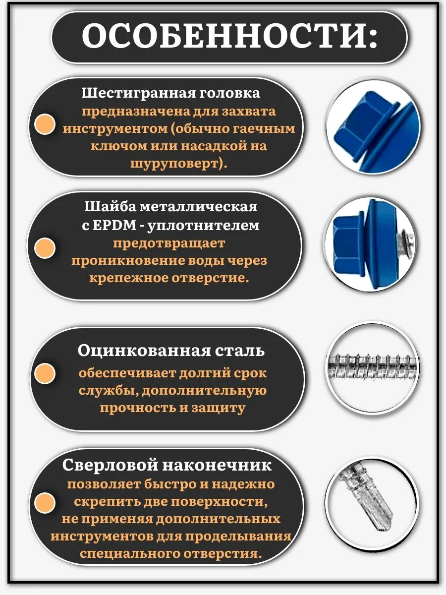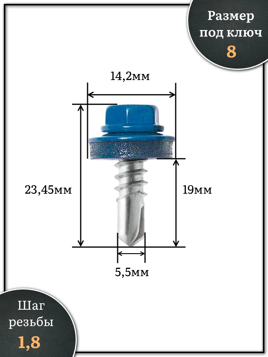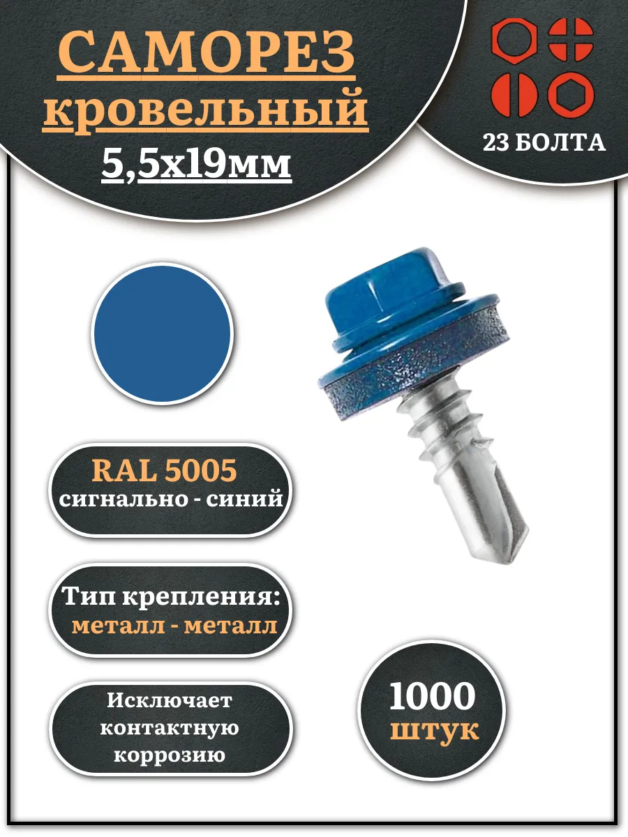 Саморез кровельный, 5,5х19 сигнально-синий RAL5005 1000 шт