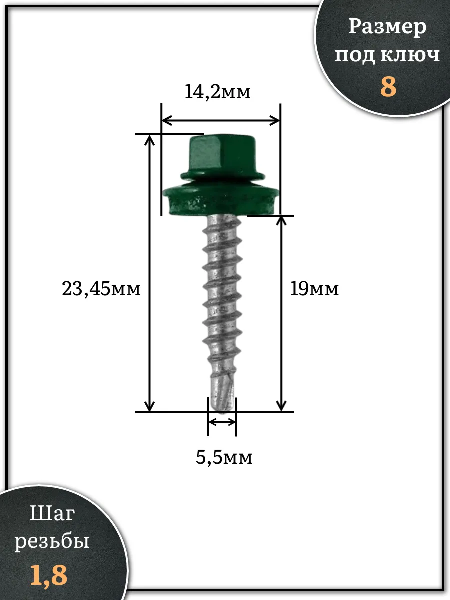 Саморез кровельный, 5,5х19 зеленый мох RAL6005 1000 шт