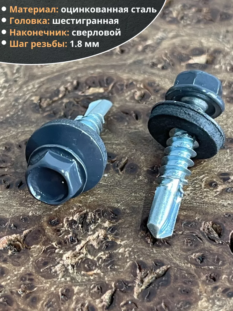 Саморез кровельный, 5,5х25 графитовый серый RAL7024 50 шт
