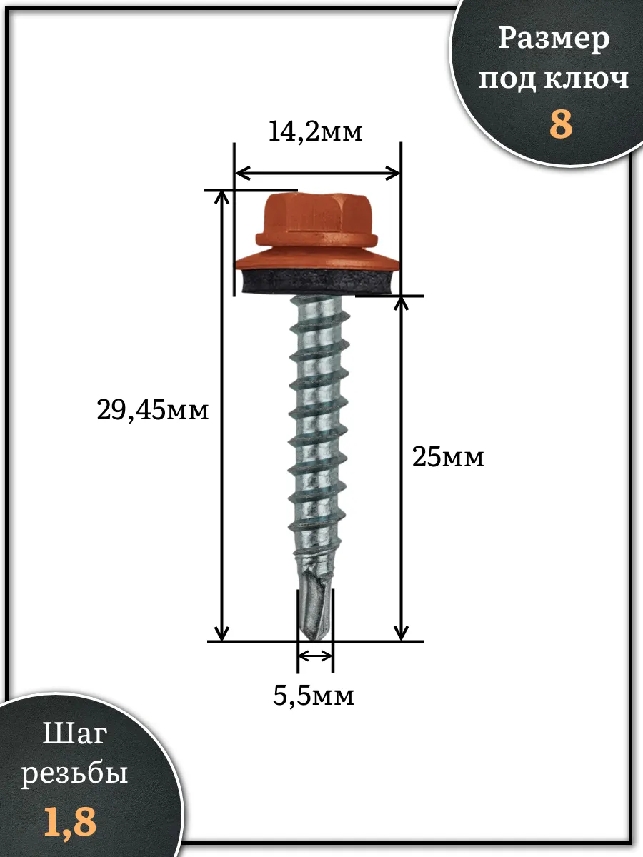 Саморез кровельный, 5,5х25 медно-коричневый RAL8004 500 шт