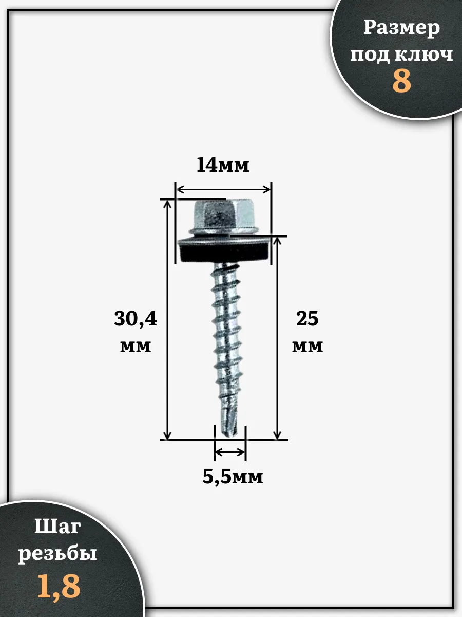 Саморез кровельный 5.5х25 мм с шайбой (под сверло),ОЦ 250шт.