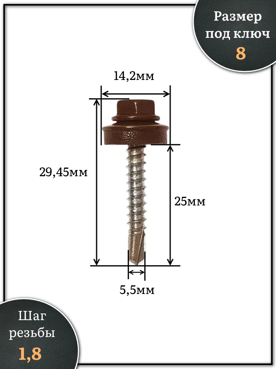 Саморез кровельный, 5,5х25 шоколадно-коричневый RAL8017 1000 шт