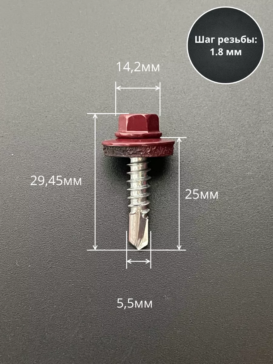 Саморез кровельный, 5,5х25 винно-красный RAL3005 50 шт