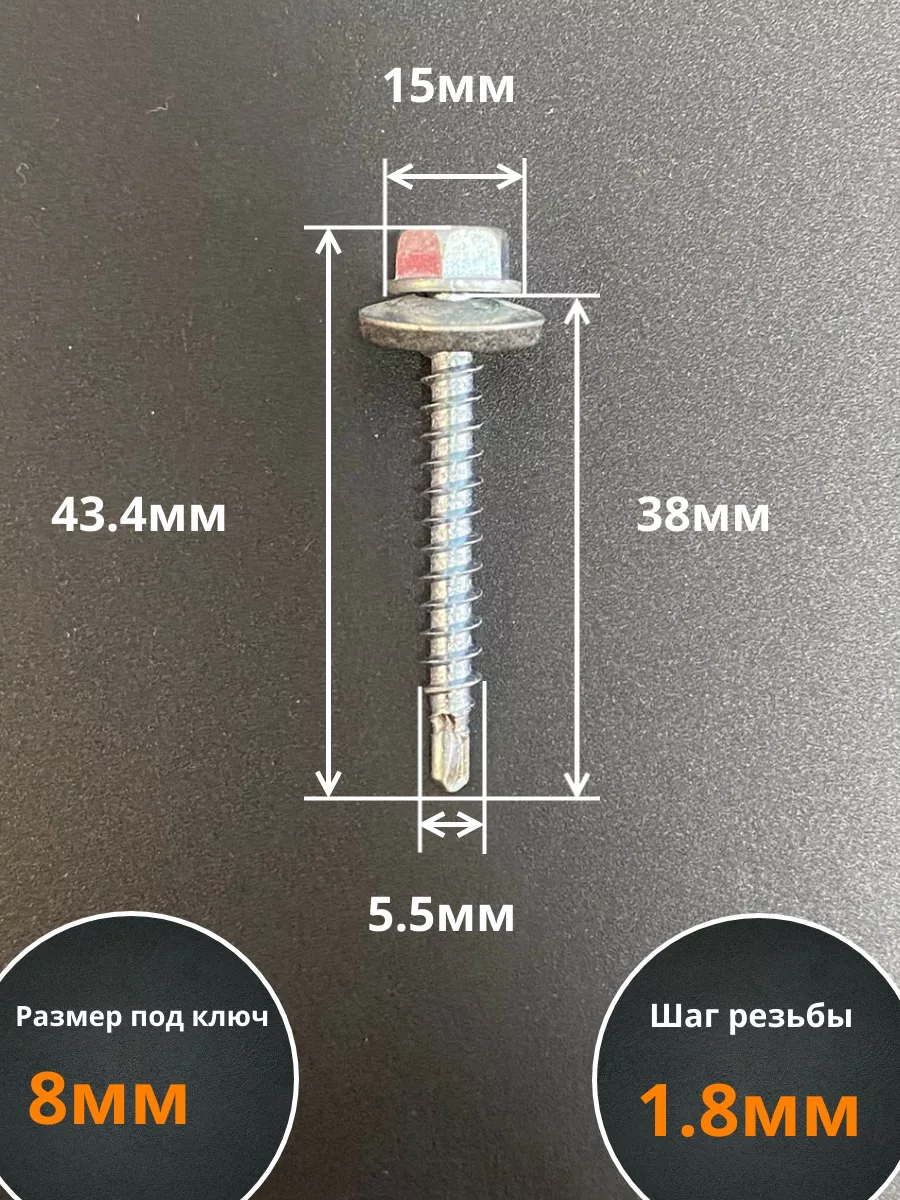 | Саморез кровельный 5.5х38 мм с шайбой (под сверло),ОЦ 250шт. | B03005503832S07ф250 | 1 шт. |