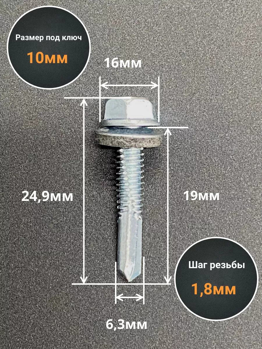 | Саморез кровельный 6,3х19 мм с шайбой (под сверло),ОЦ 250шт. | B03006301934307ф250 | 1 шт. |