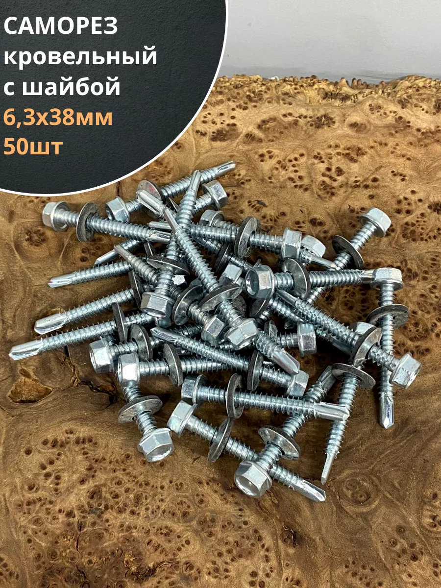 Саморез кровельный 6,3х38 мм с шайбой (под сверло),ОЦ 50шт.