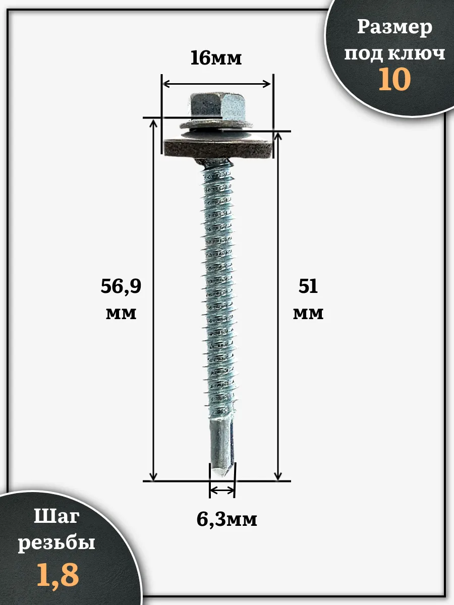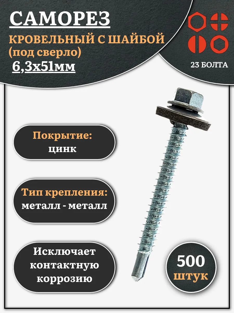 | Саморез кровельный 6,3х51 мм с шайбой (под сверло),ОЦ 250шт. | B03006305134107ф250 | 1 шт. |