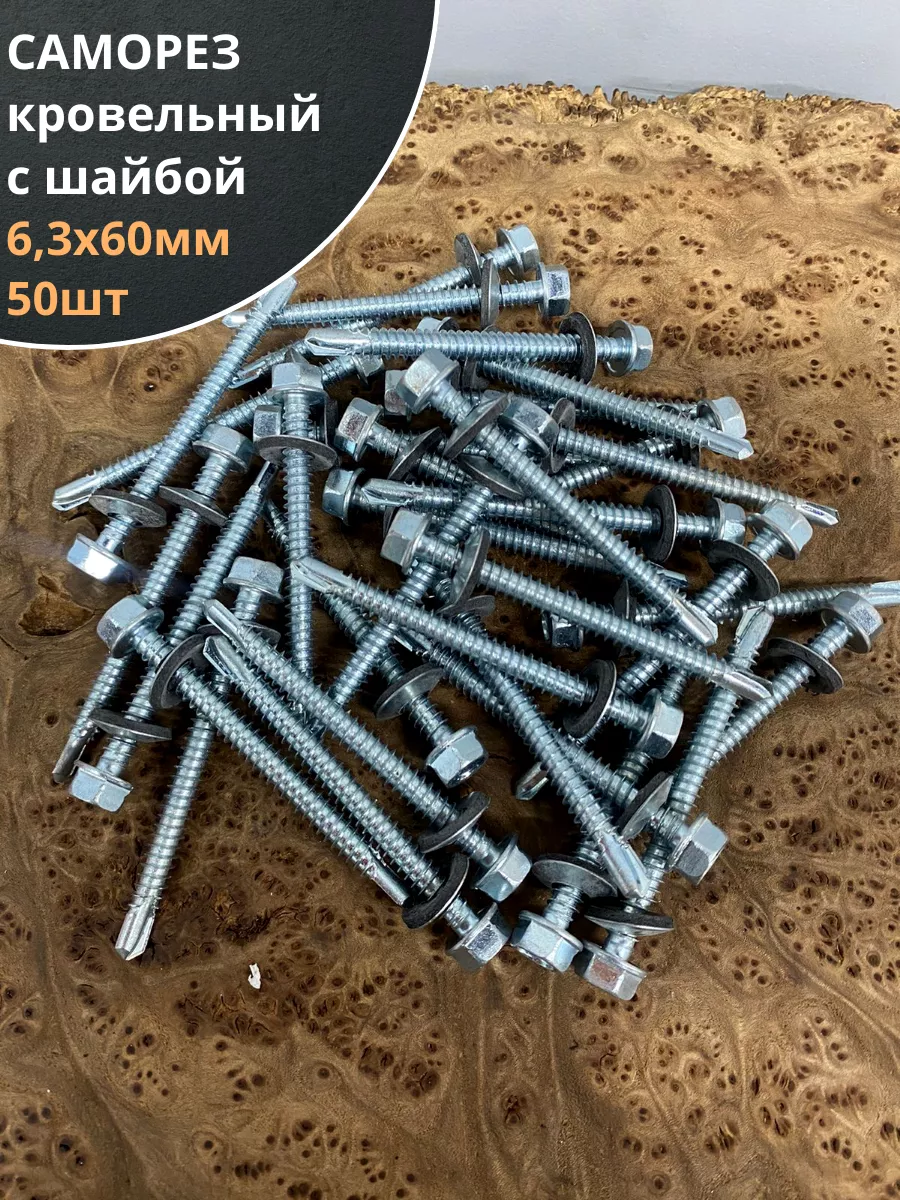 Саморез кровельный 6,3х60 мм с шайбой (под сверло),ОЦ 50шт.