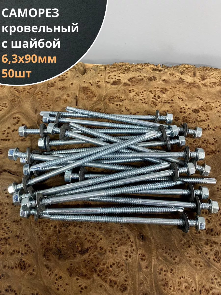 Саморез кровельный 6,3х90 мм с шайбой (под сверло),ОЦ 50шт.