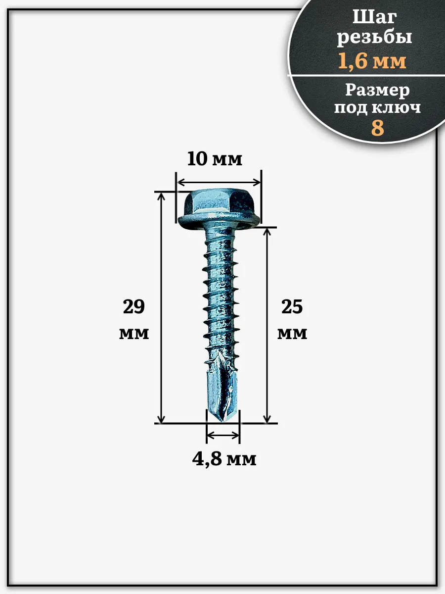Саморез кровельный без шайбы, 4,8х25 ОЦ сверло DIN 7504, 100 шт.