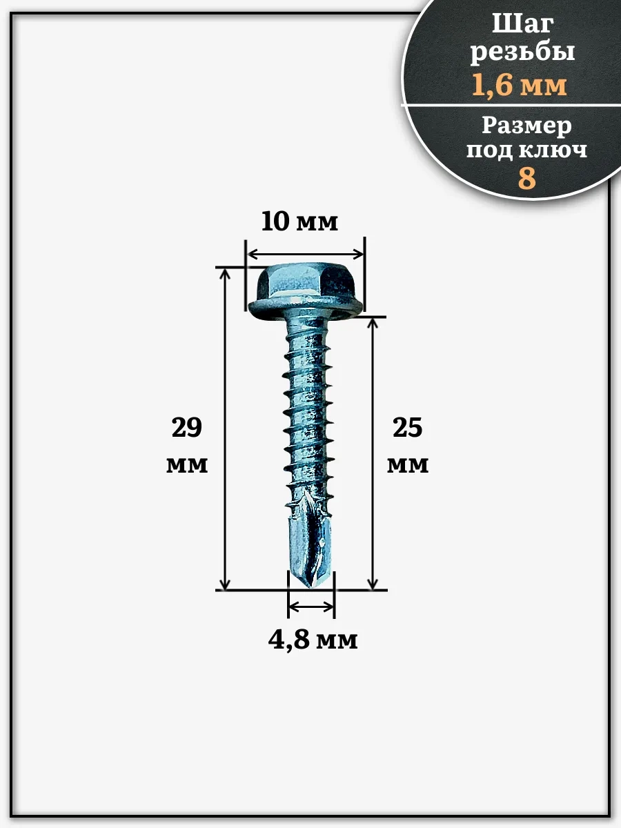 Саморез кровельный без шайбы, 4,8х25 ОЦ сверло DIN 7504, 50 шт.