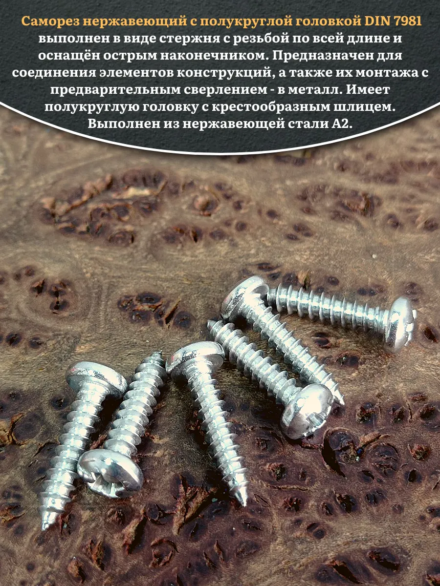 Саморез нержавеющий полукруглая гол. 2,9х13 DIN7981 , 20 шт.