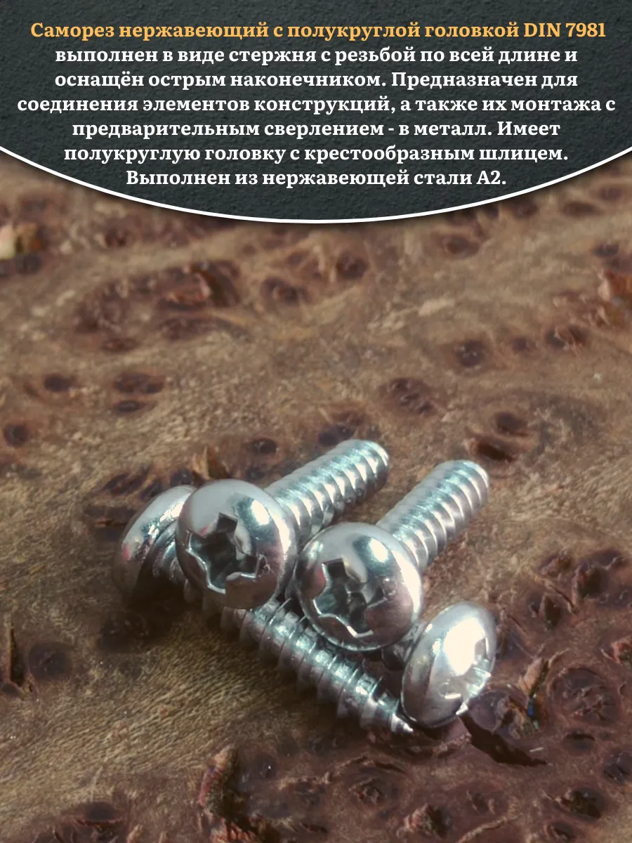 Саморез нержавеющий полукруглая гол. 3,5х16 DIN7981 , 100 шт.