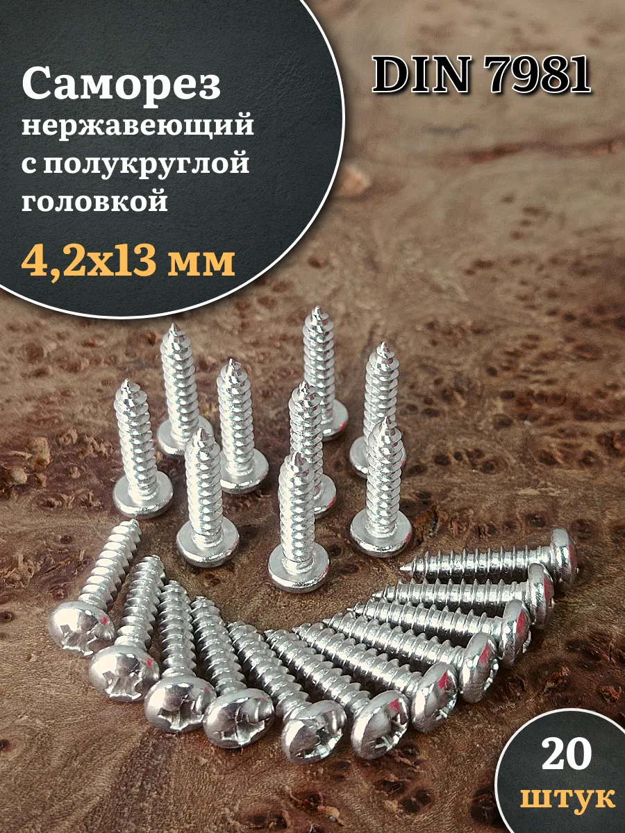 Саморез нержавеющий полукруглая гол. 4,2х13 DIN7981 , 20 шт.