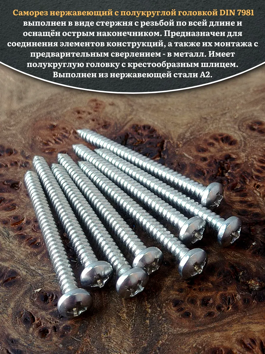 Саморез нержавеющий полукруглая гол. 4,2х50 DIN7981 , 50 шт.