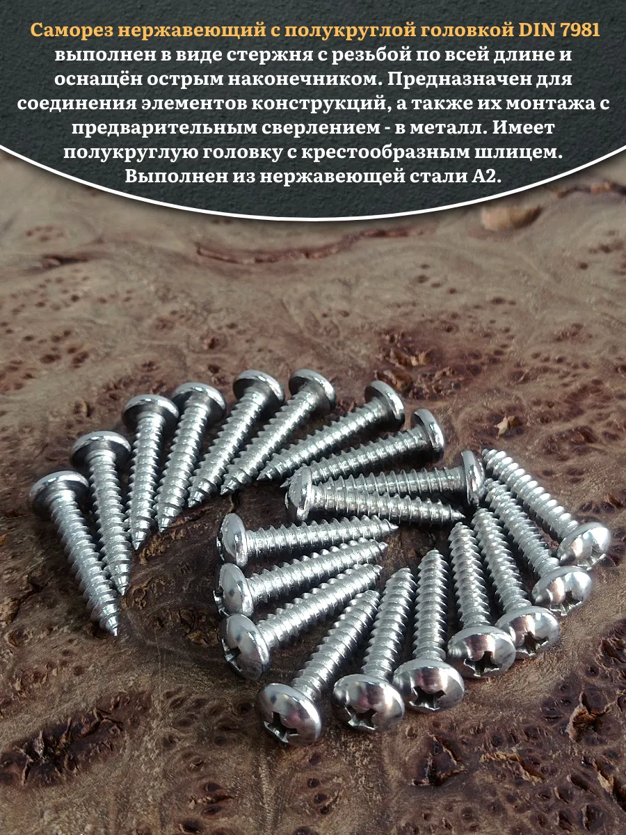 Саморез нержавеющий полукруглая гол. 4,8х25 DIN7981 , 20 шт.