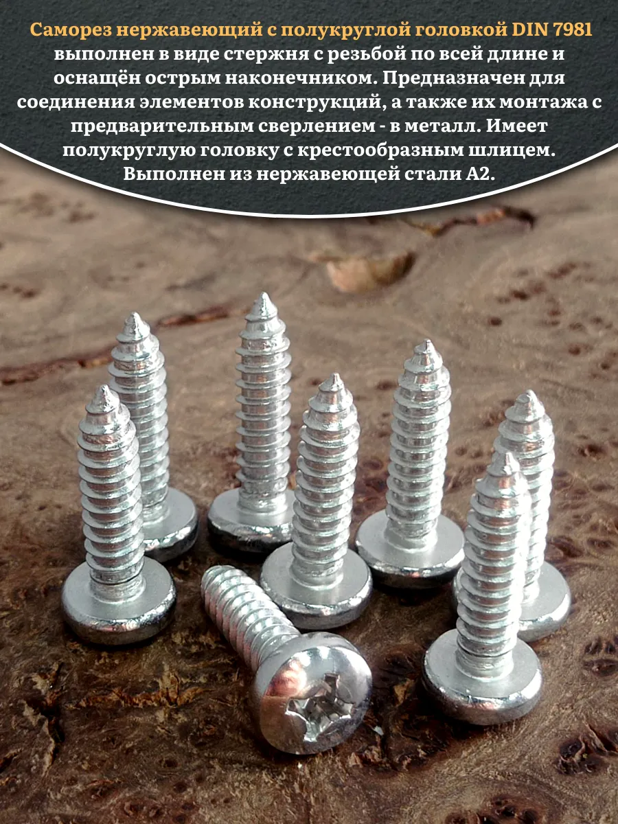 Саморез нержавеющий полукруглая гол. 6,3х25 DIN7981 , 20 шт.
