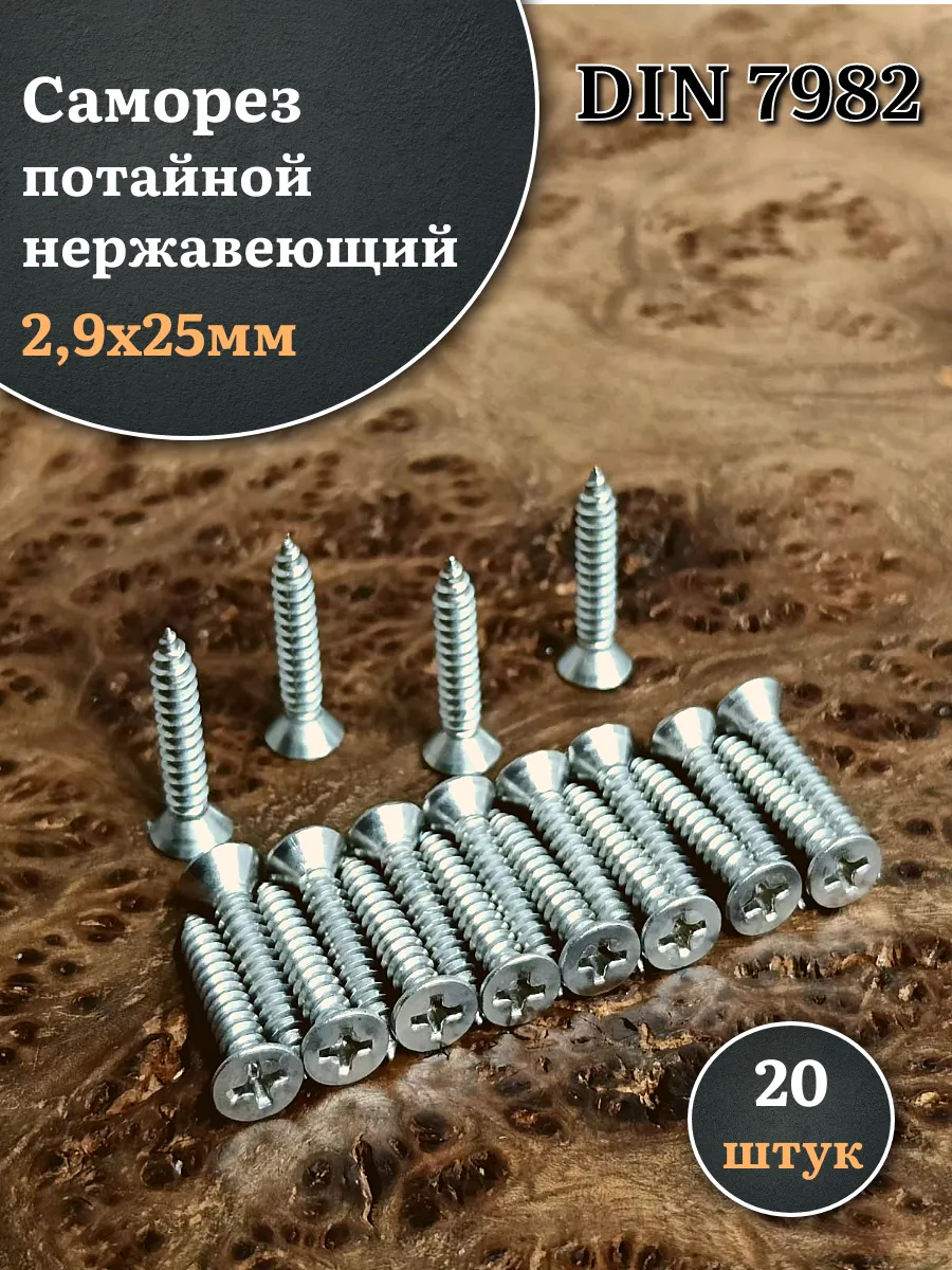 Саморез потайной нержавеющий 2,9х25 РН DIN7982 , 20 шт.