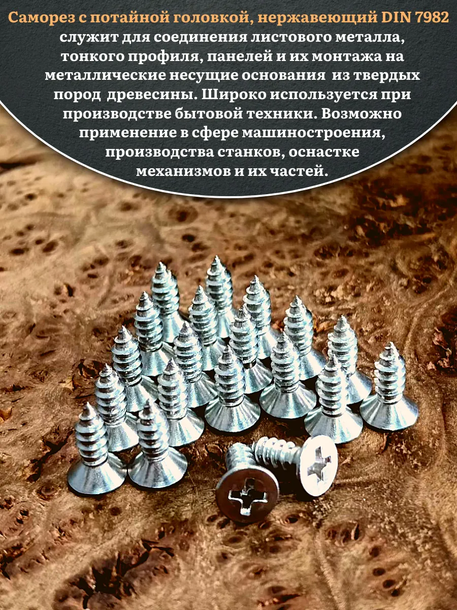 Саморез потайной нержавеющий 3,5х13 РН DIN7982 , 100 шт.