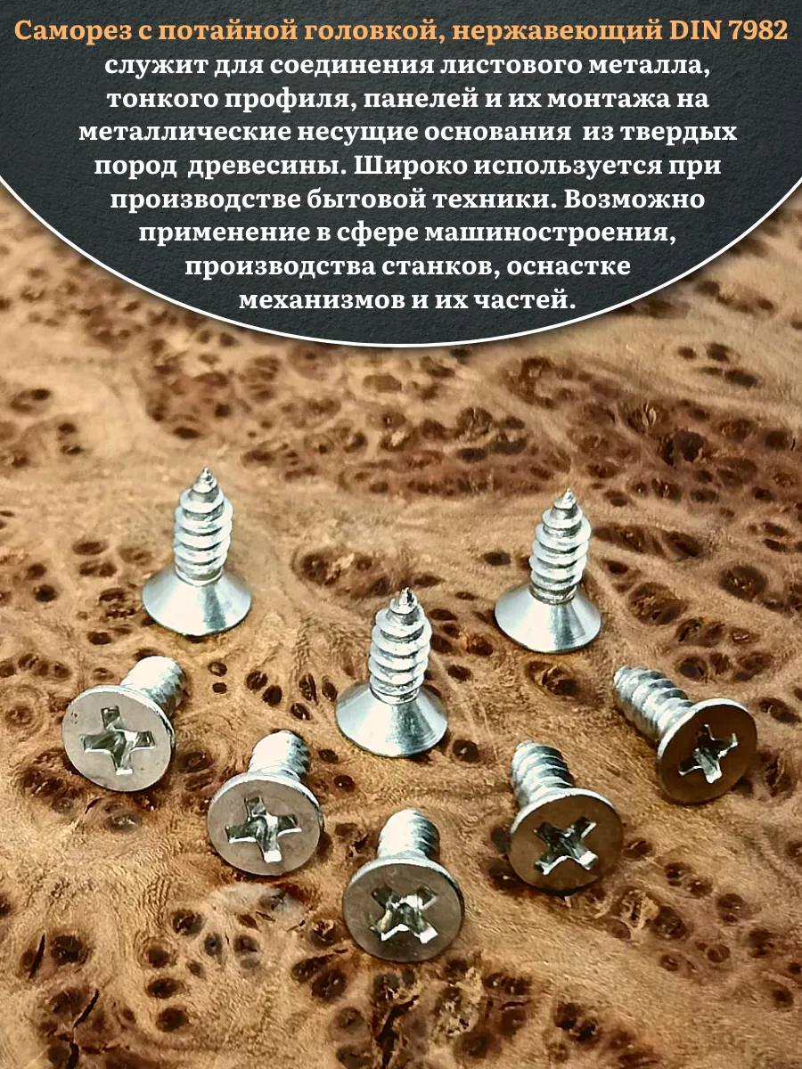 Саморез потайной нержавеющий 3,9х13 РН DIN7982 , 50 шт.