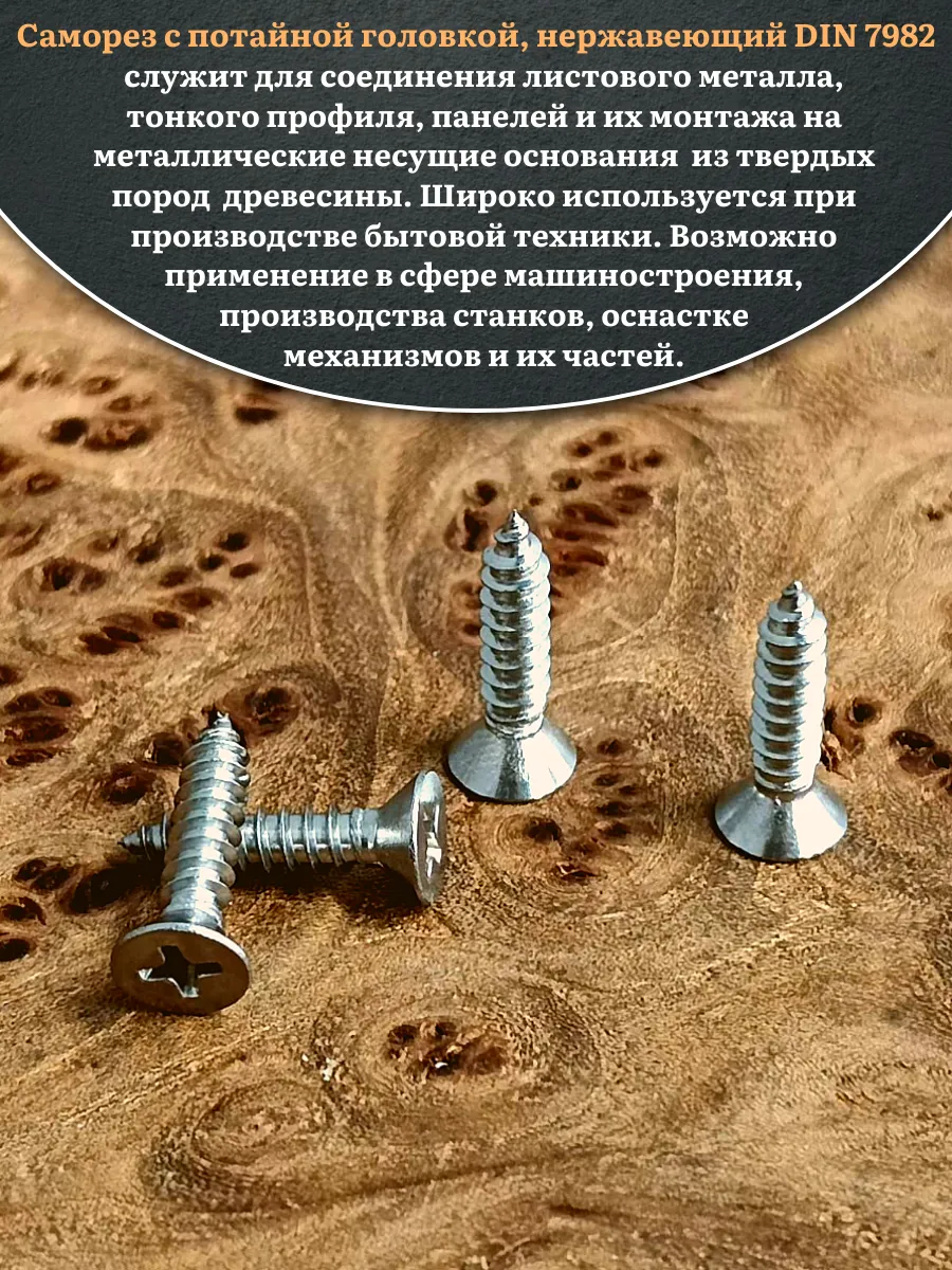 Саморез потайной нержавеющий 4,2х16 РН DIN7982 , 20 шт.