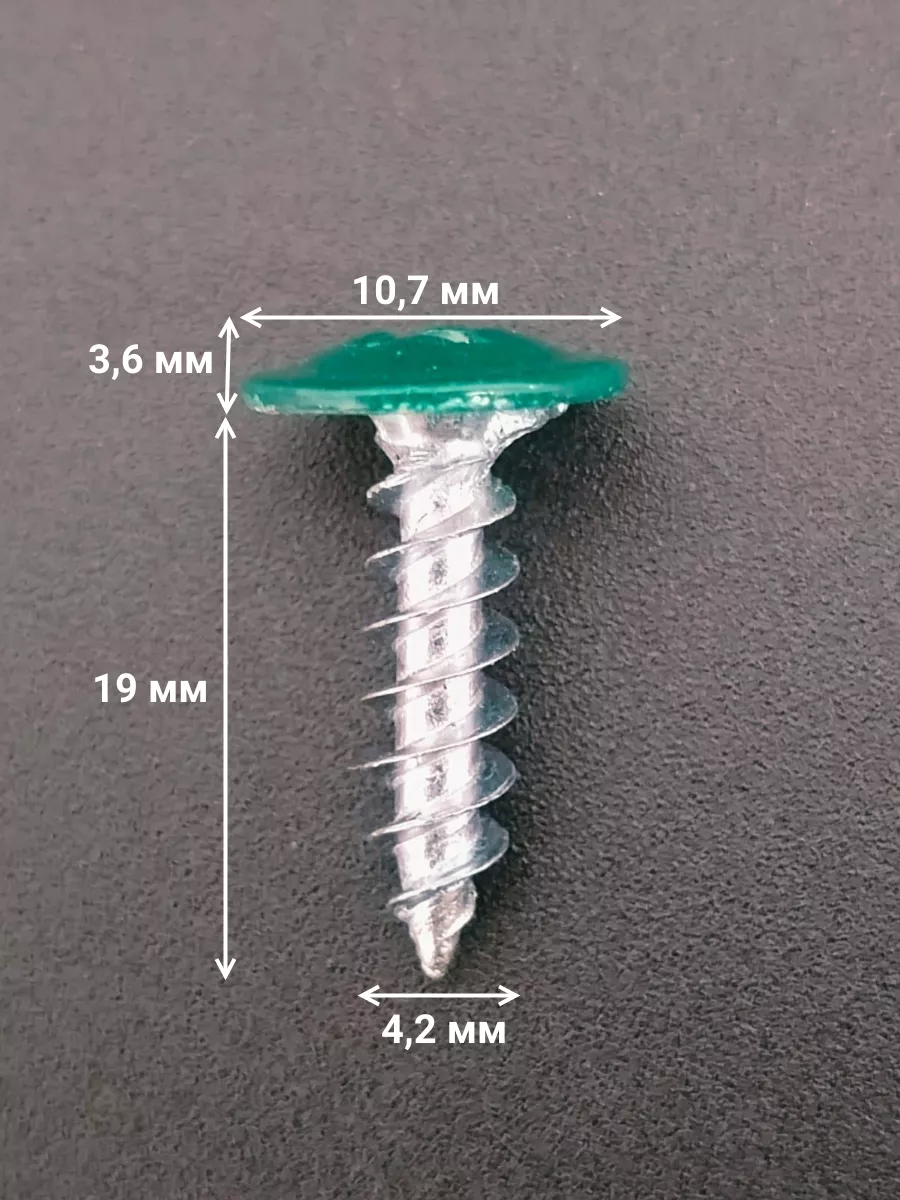 Саморез с прессшайбой 4,2х19 острый RAL6005 (зеленый), 50 шт.