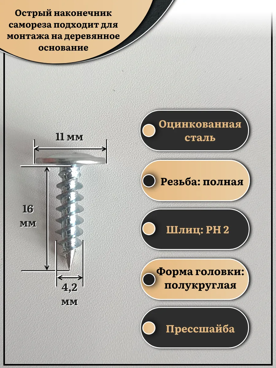 Саморез с прессшайбой острый, 4,2х16 ОЦ (Россия) 1 кг
