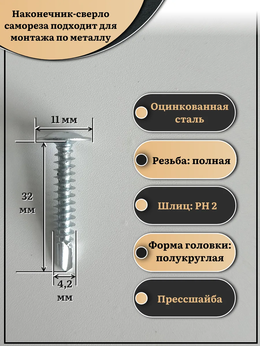 Саморез с прессшайбой сверло, 4,2х32 ОЦ (Россия), 50 шт.