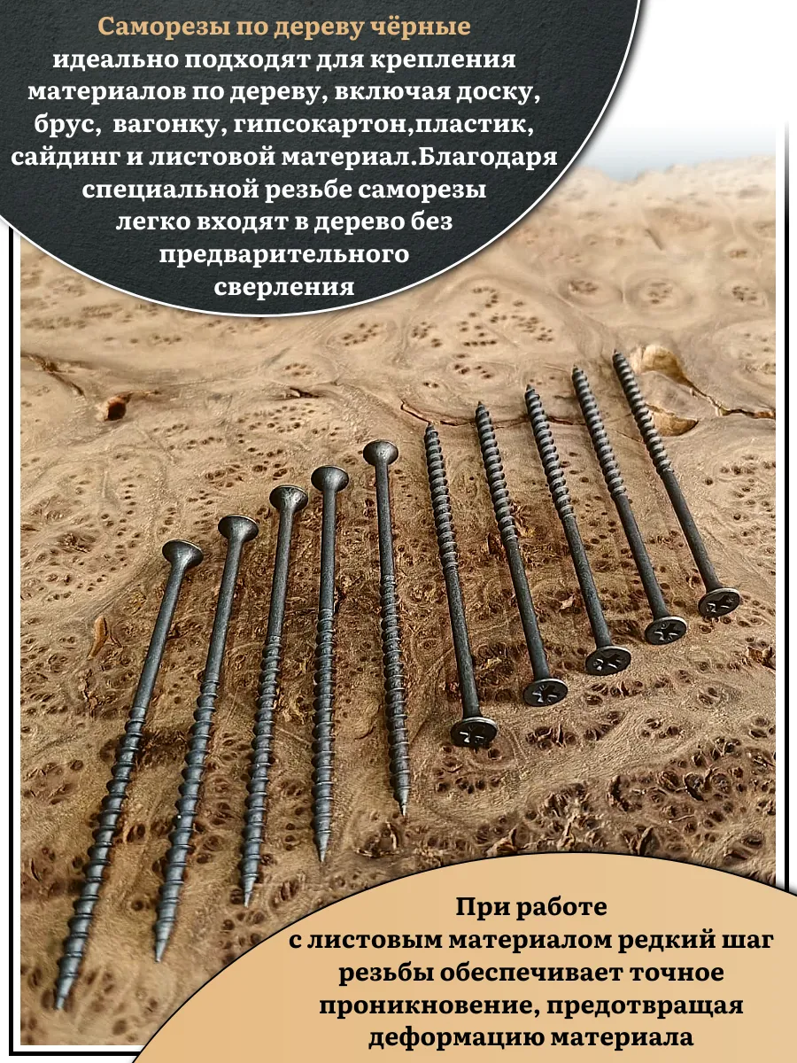 Саморез шуруп по дереву 4,2х89(90) крупная резьба, чёрный 1 кг.