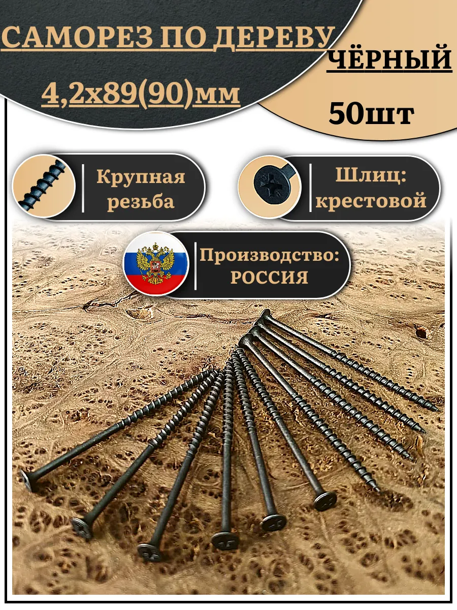 Саморез шуруп по дереву 4,2х89(90) крупная резьба, чёрный 50 шт.